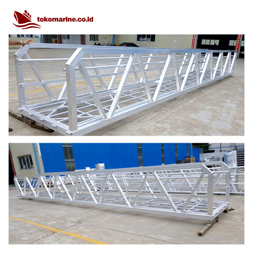 - Gangway Dermaga Apung aluminium marina strucktur deck profile nya terbuat dari material aluminium marine grade 6061-T6 sehingga anti korosi