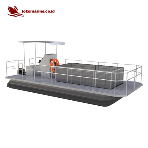 Trash Pontoon Boat adalah perahu ponton yang secara khusus dirancang untuk membersihkan sampah dari permukaan air, seperti di sungai, danau, kanal, atau pelabuhan. Perahu jenis ini biasanya digunakan oleh dinas kebersihan, organisasi lingkungan, atau perusahaan swasta yang bergerak di bidang pengelolaan air dan limbah.